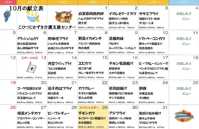2025/09/29 10月の献立表を掲載しました《新着》